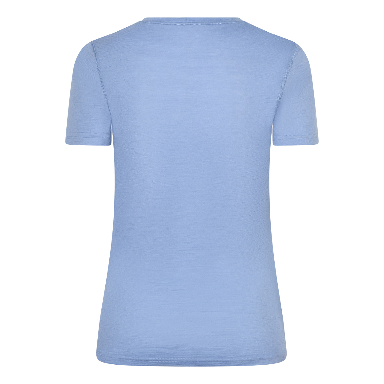 La chemise de cyclisme à manches courtes a un logo bleu réfléchissant sur le devant et le dos. Le logo réfléchissant offre une visibilité supplémentaire lorsqu'il fait nuit. La chemise de cyclisme pour femme a un élastique ferme avec du silicone sur le fond, ce qui garantit qu'il reste en place en faisant du vélo. L'élastique mesure 3,5 cm de large et a deux bandes dans les couleurs aqua et palace bleu.